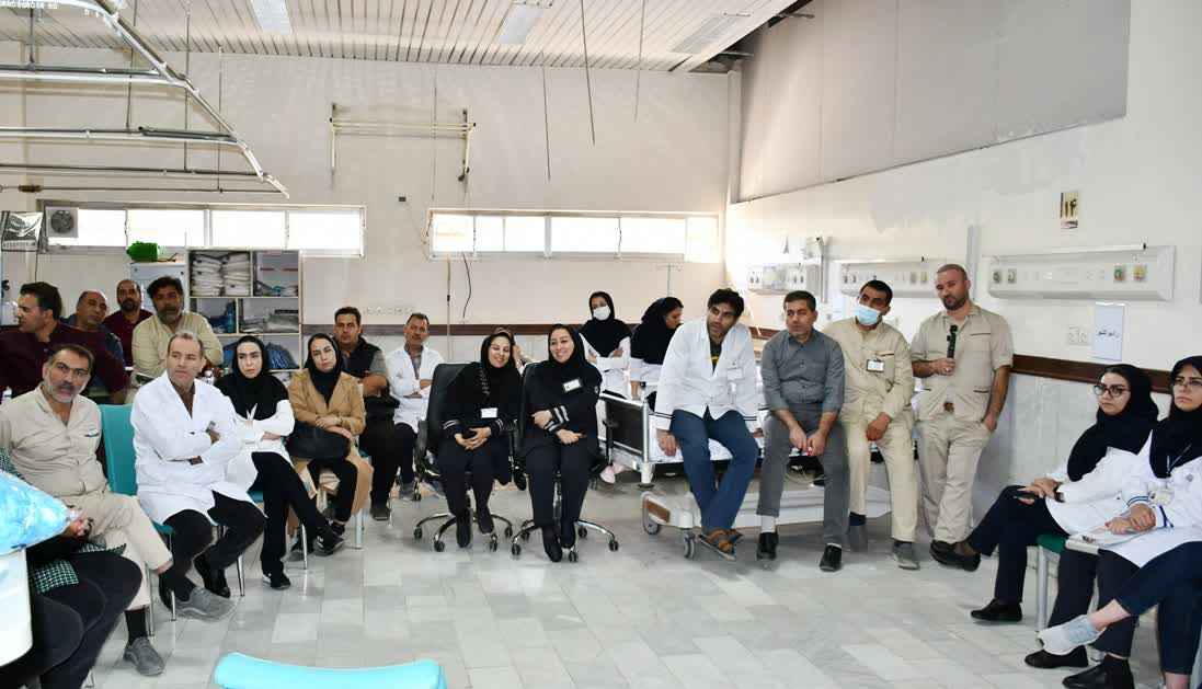 این مانور با حضور دکتر سارا نصیرهرندی مدیر درمان مرکز، دکتر محمد سالکی مدیر خدمات آموزشی، منیژه نصراصفهانی مدیر خدمات پرستاری و جمعی از سوپروایزرها و سرپرستاران برگزار گردید.