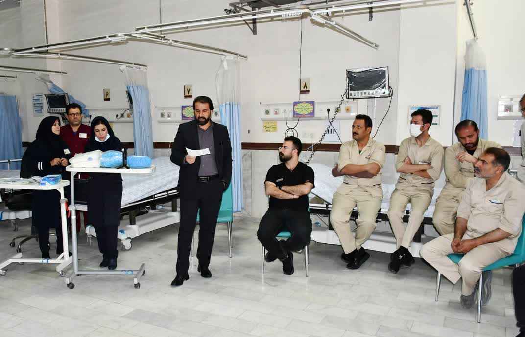 در بخش عملی این مانور، نحوه اجرای مراحل اولیه امدادرسانی و رفع آلودگی در شرایط شبیهسازیشده مورد تمرین قرار گرفت.