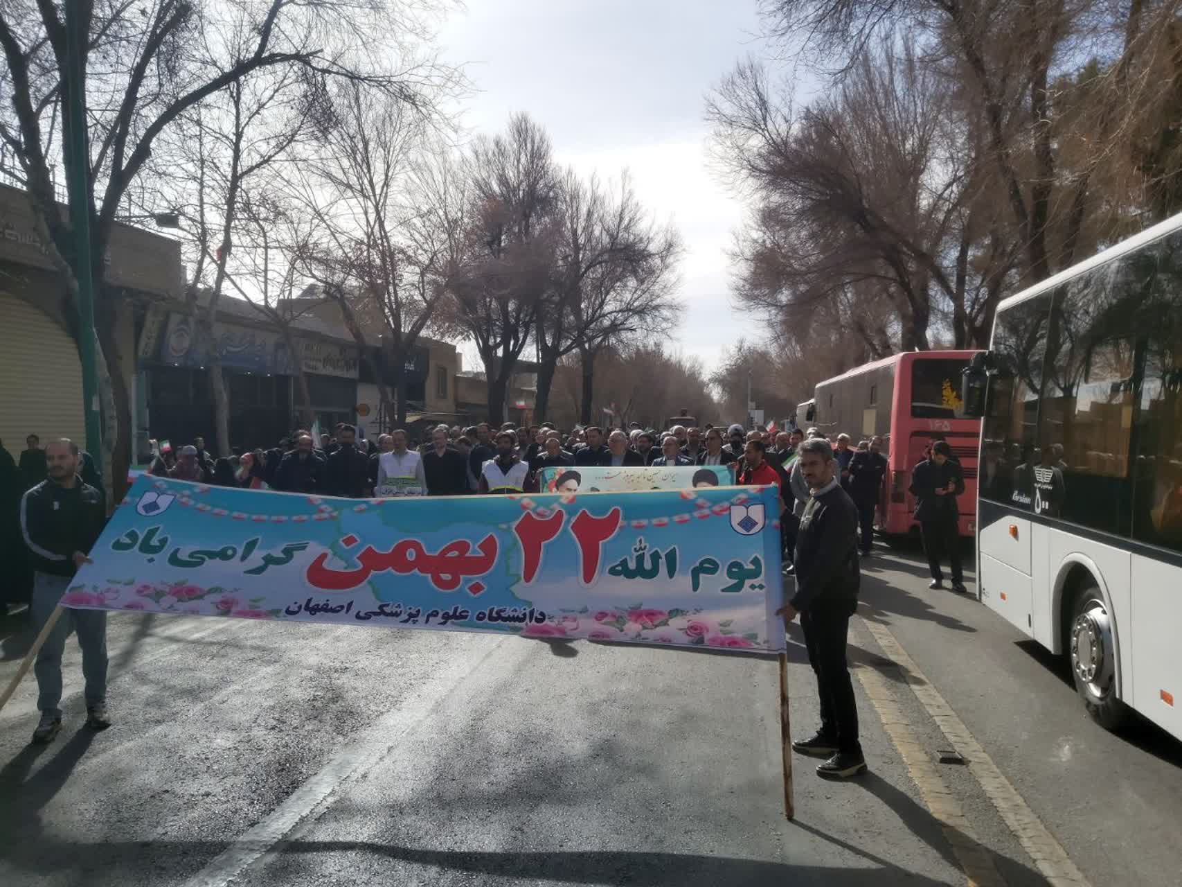 به مناسبت چهل و هفتمین سالگرد پیروزی شکوهمند جمهوری اسلامی ایران در 22 بهمن ماه 1404 هیات رئیسه و کارکنان دانشگاه علوم پزشکی اصفهان و رئیس محترم مرکز آموزشی درمانی الزهرا (س) به همراه جمعی از مسئولین و کارکنان با حضور در راهپیمایی پرشور این روز بزرگ به دعوت مقام معظم رهبری لبیک گفتند و با شعار مرگ بر آمریکا و مرگ بر اسرائیل مشت محکمی به دهان دشمنان و بدخواهان نظام مقدس جمهوری اسلامی ایران زدند.